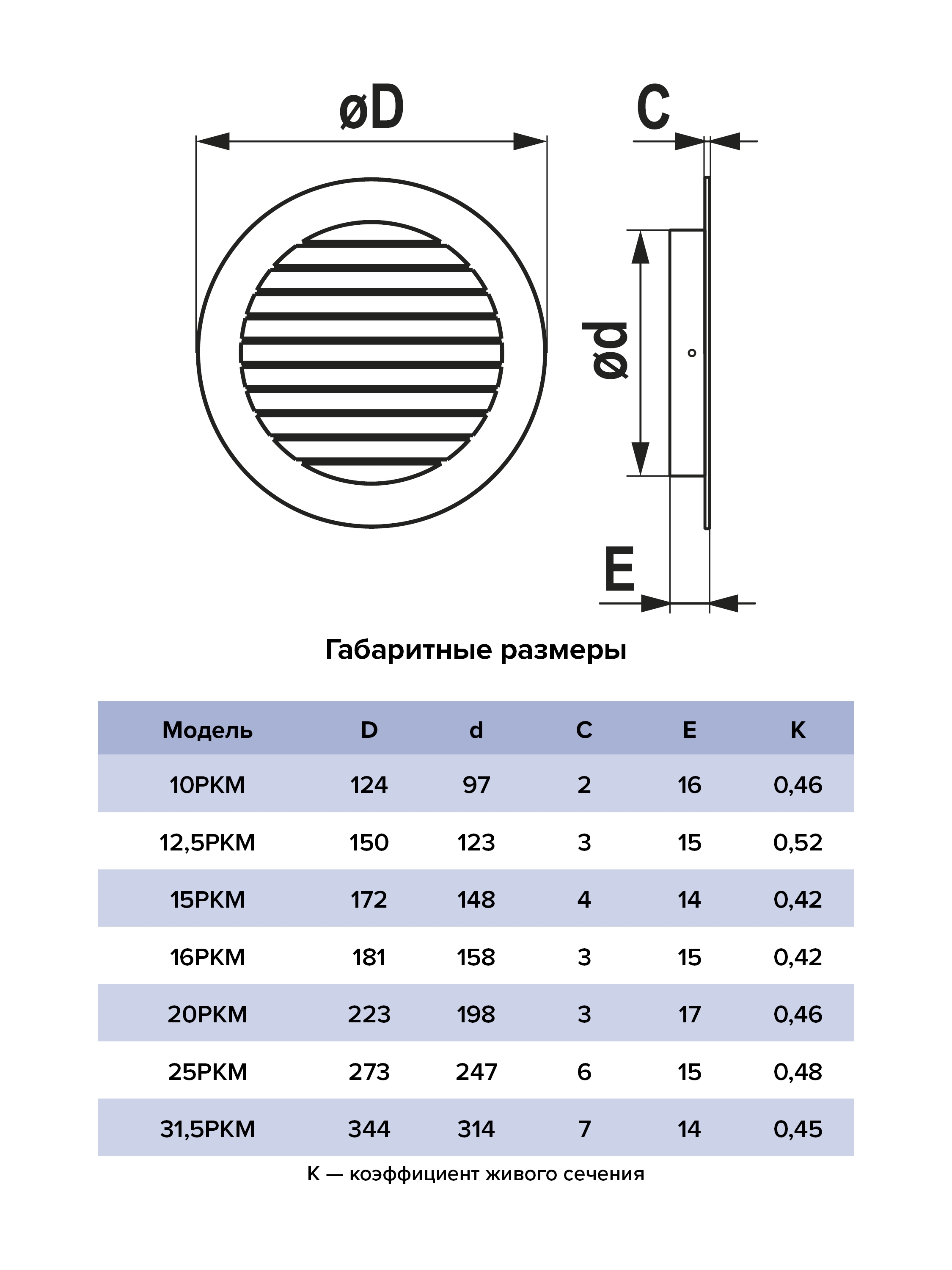 Решетка вентиляционная РКМ фланец D125 сетка D150 алюминий ERA