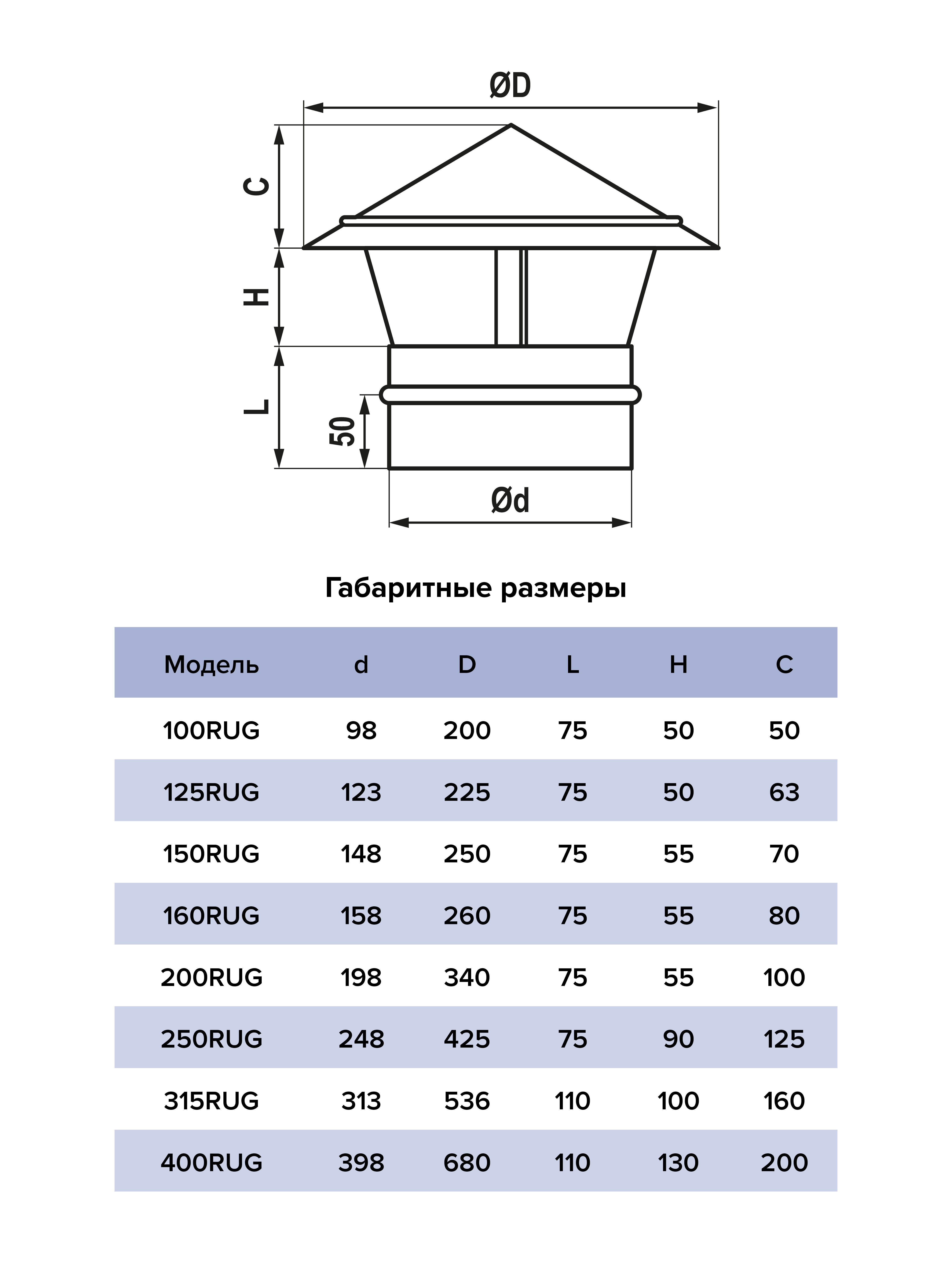 Зонт крышный RUG D400 оцинк.сталь ERA PRO